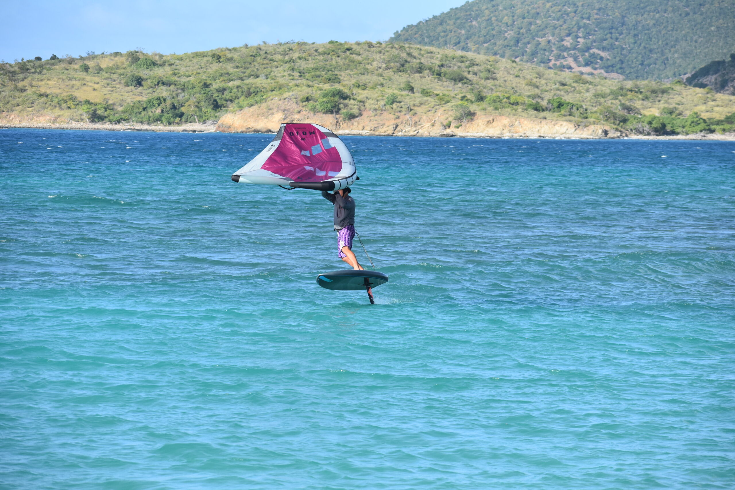 THE FEELING OF LEVITATING over water while being powered by the wind is as incredible as it is addictive. Holding an inflatable wing and catching the breeze while standing on a board, with only an attached hydrofoil in the water — this is what winging, or wing foiling is all about.